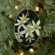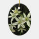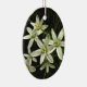 Dieses feine Kunstfotografieferienschmuck besticht durch die reizende Pflanze des Frühlingsgartens, bekannt als Star of Bethlehem (Ornithogalum umbellatum). Jede Blume hat sechs weiße Blätter und ein gelbes Zentrum. Die Blume sind Set auf einem dunklen, fast schwarzen Hintergrund.