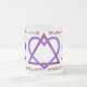 Diese mattierte Tasse aus Glas unterscheidet sich wunderbar - feminin, ohne übermäßig gürtig zu sein, mit Leslie Sigal Javoreks originalem Digitaldesign eines David-Sterns, bestehend aus einem pflaumenfarbenen Dreieck und ineinander greifendem Perlenbeißelblauen Herz.