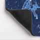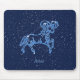 Mousepad im Zodiaksymbol für Äries in weichem silberblauem Blau, überlagert mit den Sternen des Sternbildes, vor einem Sternenhimmel von tiefblauem Mitternachtsblau