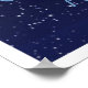 Poster mit dem Symbol für Sterne in weichem silberblauem Blau, überlagert mit den Sternen des Sternbildes, vor einem Sternenhimmel-Hintergrund von tiefem Mitternachtsblau bis schwarz.