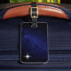 Bearbeitbarer Stern auf der navy blauen Galaxie Gepäckmarke. Stern kann durch Ihr Logo oder Ihr Lieblingsbild ausgetauscht werden. Design der nächsten Generation!