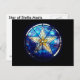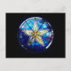 Eine Postkarte mit einem schönen Buntglasfenster mit Sternen aus der Kapelle Stella Maris.