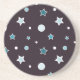 Nahtloses Weihnachtsmuster, blaue Sterne und Schneeflocken auf dunklem Hintergrund.