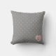 Blassrosa Herzen bilden ein Polka Punktmuster auf einem angenehmen grauen Hintergrund. Ein goldener Stern, der sich in den Herzen versteckt, verleiht ihm einen emulierten metallischen Glanz und schafft so ein spielerisches und niedliches Design. Passen Sie das Monogramm auf diesem Kissen an, um es zu Ihrem eigenen zu machen.