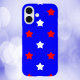 Magst du Sterne-Handy-Fälle? Dieses Gehäuse hat ein Muster aus roten und weißen Sternen auf blauem Hintergrund.