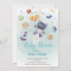Einzigartige Baby-Dusche-Einladung mit Sternen, Astronaut, Planet und Rakete.