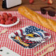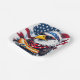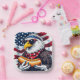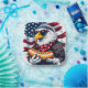 Diese mutige und lebendige Illustration erfasst das Wesen des amerikanischen Stolzes mit einem charismatisch kahlen Adler, der eine rote Sonnenbrille und eine patriotische Bandana donnert. Der Adler, der einen klassischen Hot Dog mit Senf besänftigt, verkörpert den Geist der Freiheit, der Festlichkeit und der guten altmodischen amerikanischen Begeisterung. Set vor einem fließenden Hintergrund der US Flagge, ist dieses Design perfekt, um Unabhängigkeitstag zu feiern, Grillabende, und alles, was rot, weiß und blau.