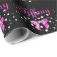 Hübsches Verpackungspapier des Mädchens getan im Schwarzen, mit Grafiken der weißen Gruppen der Sterne und des rosa Satins, die Bögen, mit kundenspezifischem rosa Skripttext schauen. Personifizieren Sie den Namen auf dem Papier zum Anzug Ihr Bedarf. Groß Geschenke für des Bonbons 16 und Quinceañera Geburtstag. Wählte von verschiedenen Papierart drei und von den Größen.