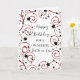 Geburtstagskarte für Juristenschwester mit lustigen Stars und Wirbel in Schwarz und Rot und nachdenklichem Vers.