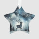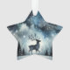 Ein eleganter Hirsch steht unter einem schimmernden Winterhimmel, eingerahmt von schneebestäubten Kiefern und zarten kahlen Bäumen. Die tiefen Mitternachtsblautöne gehen in frostige Weißtöne über, während Sterne und Schneeflocken wie Juwelen über den Himmel verstreut sind. Diese träumerische Waldszene fängt das stille Staunen einer schneereichen Nacht ein und verbindet die Gemütlichkeit von Cottagecore mit himmlischer Magie. Perfekt, um die Stille des Winters und die Schönheit des Rhythmus der Natur heraufzubeschwören. KI-generiertes Kunstwerk.