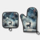 Sternenhafte Winternachtshirsche Ofenhandschuh & Topflappen-Set