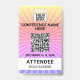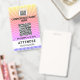 Sternexplosion gelb, rosa, lila Konferenz Event Abzeichen mit Platz für Ihre Veranstaltung QR-Code, Logo und Teilnehmer-Benennung und Zugriffslevel Details.