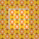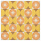 Das ist ein elegantes atomares Sternexplosionen-Muster aus der Mitte des Jahrhunderts auf orangefarbenen Kreisen und gelben Halbkreisen auf den Quadraten