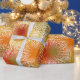 Dieses Verpackungspapier hat ein Boho-Design von Sternexplosionen in Gamboge (Gold), Rot, Beere und Grün.