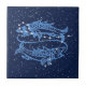 Ziegelstein für Pisces in weichem silberblauem Blau, überlagert mit den Sternen der Sterne, vor einem Sternenhimmel in tiefblauem Mitternachtsblau