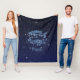 Fleecedecke mit dem Symbol für Pisces in weichem silberblauem Blau, überlagert mit den Sternen der Sterne, vor einem Sternenhimmel, der von tiefer Mitternacht blau bis schwarz gestuft wird.