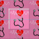 Medizinisches Muster von Stethoskopen und Herzschlagliniensymbolen in roter, rosa und weißer Stoffkonstruktion, ideal für alle Arten von Kunstwerken