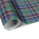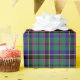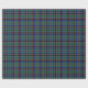 Geschenkpackung mit dem Tartan für Clan Stevenson und Stephenson. Hellgrün, königsblau und schwarz schottisches kariertes Muster aus dem Jahr 1970 mit gelben und roten Akzenten.