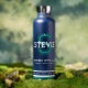 Einfaches Namensschild, das Text in Sportart Flasche für den Namen Stevie bedeutet Krönt in Ruhm. Charismatisch, organisiert und schlagkräftig. Andere Namensbedeutungsstile stehen zur Verfügung oder personalisieren Sie dieses Objekt mit Ihrem eigenen Namen und was Ihr Name für Sie und Ihren Chor oder Ihr Team bedeutet oder Ihren Namen wiederholt. Ideal für Fans oder Spieler, die schwarz oder blau, grün blau aquamarin und weiß wie ihre Mannschaftsfarben sind. Designed by www.mylittleeden.com und namesense auf Zazzle.