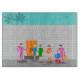 Sie sind eingeladen zum gesellschaftlichen Event des Jahres mit diesem Atomic Palm Springs Stewardess Party Schneidebrett Design. Die drei Vintagen Flugbegleiter von konkurrierenden Fluggesellschaften kommen auf ihrem Karo in ihr kitschiges Blockhotel der 60er Jahre. Einer der fabelhaft hunky bellhops in einer rosa Retro-Uniform hält die orangefarbene Tür, während der andere mit dem Frauengepäck kämpft. Aquamarine Palmen schmücken den unvorstellbar türkisblauen Himmel, da ein Jetliner über ihm fliegt. Dieses Design wird Sie zum Sprichwort bringen: "Zu Ihrer Marke, Jet-Set, los!"