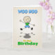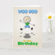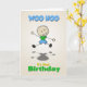 Ein lustiger Cartoon eines springenden Jungen. Die Worte WOO HOO oben und es ist dein Geburtstag unten. Im Inneren können Sie es mit dem Namen des Kindes personalisieren. Perfekt für diesen ganz besonderen kleinen Jungen