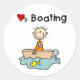 Ein Strichmännchen, das eine Rettungsweste trägt, sitzt im Boot, während ein Fisch vorbeikommt und auf unseren Stick Boy-Lieben "Herzbootfahren" mit T - Shirt, Mousepads, Aufklebern, Magneten und anderen Gegenständen steht.