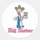 Stick Cowgirl mit Jeans und rosa Stiefel mit dem Text 'Big Sister'. Hat passende kleine Schwester und mittlere Schwester Designs.