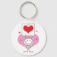 Eine Aufkleberfigur, die ein Herz in der Liebe hält. Dieses Design sieht auf diesem Schlüsselanhänger wirklich effektiv aus