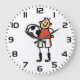 Keep track of game time with this whimsical soccer stick figure wall clock. Featuring a cheerful boy in a red jersey holding a football, this decorative timepiece is a fantastic addition to a child’s bedroom, playroom, or home office. The clean cartoon aesthetic and hand drawn sports illustration make it an engaging way to teach kids about time. It is a perfect gift for any young athlete or dedicated football fan.