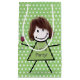 Lächelndes Stick Mädchen mit Weinglas, Haar, Perlenhalskette auf einem grünen und weißen Polka Punkt Hintergrund zum Geburtstag.