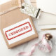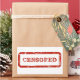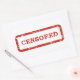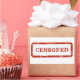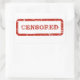 Eine grafische Abbildung einer Briefmarke aus zensiertem Kautschuk auf einem Aufkleber.