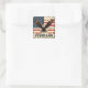 This striking, patriotic sticker features a powerful bald eagle in full flight with its wings spread wide, set against a vintage, distressed American flag background.