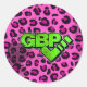 The GBPC Logo on pink. A sheets of six 3" stickers