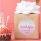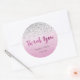 Rundaufkleber für Geburtstagsparty Gefallen mit Imitaten silber Glitzer und ombre pink Aquarell Hintergrund.