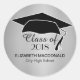 Silber-Abschluss Aufkleber mit schwarzem Text und Mörtel. Die Klasse und dann der Name des Absolventen und High School oder Uni folgen. Eleganter Aufkleber zum Umschlag Aufkleber auf Graduierungsankündigungen und Graduierungsfeierankündigungen. Einfache Anpassung der Vorlage.