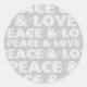 Runde Aufkleber mit grauem Hintergrund mit weißem Text, der Peace & Liebe mit einem Overlay ausliest, der frohe Weihnachten in kleinerem weißen Text liest. Wir haben auch die passenden Urlaubsfotokarten, Porto- und Adressetiketten!