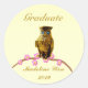 Goldene Eule auf Graduate Aufkleber. Die goldene Eule ist auf einem blühenden Baumzweig stehend. Text ist bereit, personalisiert zu sein.