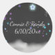Verzauberter Chalkboard Hochzeitsaufkleber mit Lichtern und Blasen.