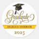 Eleganter Script-Abschluss Sticker. Mit einer Graduationskappe über ein verziertes Drehbuch "Graduate" in Gold mit einem schwarzen "Drop shadow". Die Absolventen benennen schwarz auf einem farbigen Band über den Aufkleber. Das Jahr am Ende des Aufklebers ist individuell einstellbar, ebenso wie der Name. PS: Die Farbe des Farbbands oder des gesamten Hintergrunds ist innerhalb des Designtools variierbar, um Ihr Farbmotiv anzupassen. Dies ist ein vielseitiger Aufkleber und kann als "Signatur" oder spezielles Element auf Ihrer E-Mail-Korrespondenz verwendet werden, Gefälligkeitstaschen, Dankeschön-Notizen oder andere. Machen Sie dies zu einem Meilenstein in der Erinnerung mit einer glänzenden und spannenden Zukunft mit Chancen vor.