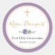 Eleganter Gefälligkeitsaufkleber mit lila Hintergrund und Golddetails. Finden Sie passende Produkte in unserem Shop oder kontaktieren Sie uns.