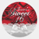 16 . Geburtstag Aufkleber. Eleganter silberner Perlenbogen und lebhafte rote Seide. Bitte beachten: Alle flachen Bilder!