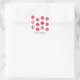 Ein Aufkleber mit rot-weißen Weihnachtsbällen und einem "Frohen Weihnachtstext". Passen Sie den Aufkleber mit eigenem Text, Hintergrundfarbe u.a. an.