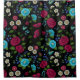 Das Badezimmer ist mit einem hübschen, im Volksstil dekorierten Duschvorhang im Bad ausgestattet, der mit rosa, blauen Blumen, grünen Blätter und einem blauen Schmetterling auf schwarzem Hintergrund gestaltet ist. Ein perfektes Geschenk für Ihre Freunde und Familienmitglieder.