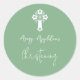 Grüne Aufkleber mit weißem Blumenkreuz zum Taufen oder Taufen. Personalisieren Sie mit dem Namen Ihres Babys und wechseln Sie Taufe zu Taufe, wenn gewünscht. Teil der Floral Cross Christening Collection.