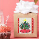 Handgemalter Weihnachtsbaum mit Ziergegenständen und Bonbons. Joy geschrieben auf einem roten Baumrock mit roten Beeren und grünen heiligen Blätter. Imitate kreuzen den Hintergrund der Stiche. Original Artwork von TamiraZDesign.