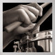 Dieses extrem detaillierte hyperrealistische Ölgemälde von Jeff Bartels zeigt einen Mann, der Schlagzeug spielt. Das eng zugeschnittene Schwarz-Weiß-Bild zeigt die beiden Hände des Trommlers, die Trommelstöcke mit einer Schnauze am unteren Rand des Gemäldes halten. Starkes Licht und Schatten sowie die enge Beschneidung verleihen diesem Gemälde ein eindrucksvolles und dramatisches Gefühl.