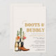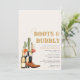 Lass uns gehen, Mädchen! Bereiten Sie sich auf eine wilde Fahrt in den Wilden Westen vor! Diese lustige Boots und Bubbly Bridal Shower Invitation ist perfekt für ein Western-Brautparty oder Bachelorette Nacht. Einzigartig und originell, mit handgezeichnet und wasserfarbenen Kakteen, Cowboystiefeln und leicht zu anpassenden Hüten. Also, nimm deinen Cowboy-Hut und mach dich fertig für das letzte Rodeo!
