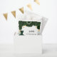 Für eine Quinceañera, 15. Geburtstagsparty. Weiße Hintergrundfarbe mit smaragdgrünen Glitzern, Kleid und grüne Rose. Der Name ist mit einem modernen handgeschriebenen Stilskript geschrieben. Personalisieren und fügen Sie einen Namen und ein Datum hinzu.
