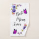 Schönes Set für Muttertag-Badetücher mit wunderschönen lila und blauen Blume, rosa und lila Schmetterlingsbildern mit individualisierbarem Text "Beste Mama je".