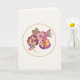 Weiche, romantische handgemalte Stiefmütterchen, umrahmt von einem feinen antikisierenden Goldkreis auf luxuriösem Elfenbein. Eine zeitlose Art, Fürsorge und Trost zu senden. Der innere Gruß lautet „Ich denke an Dich.“